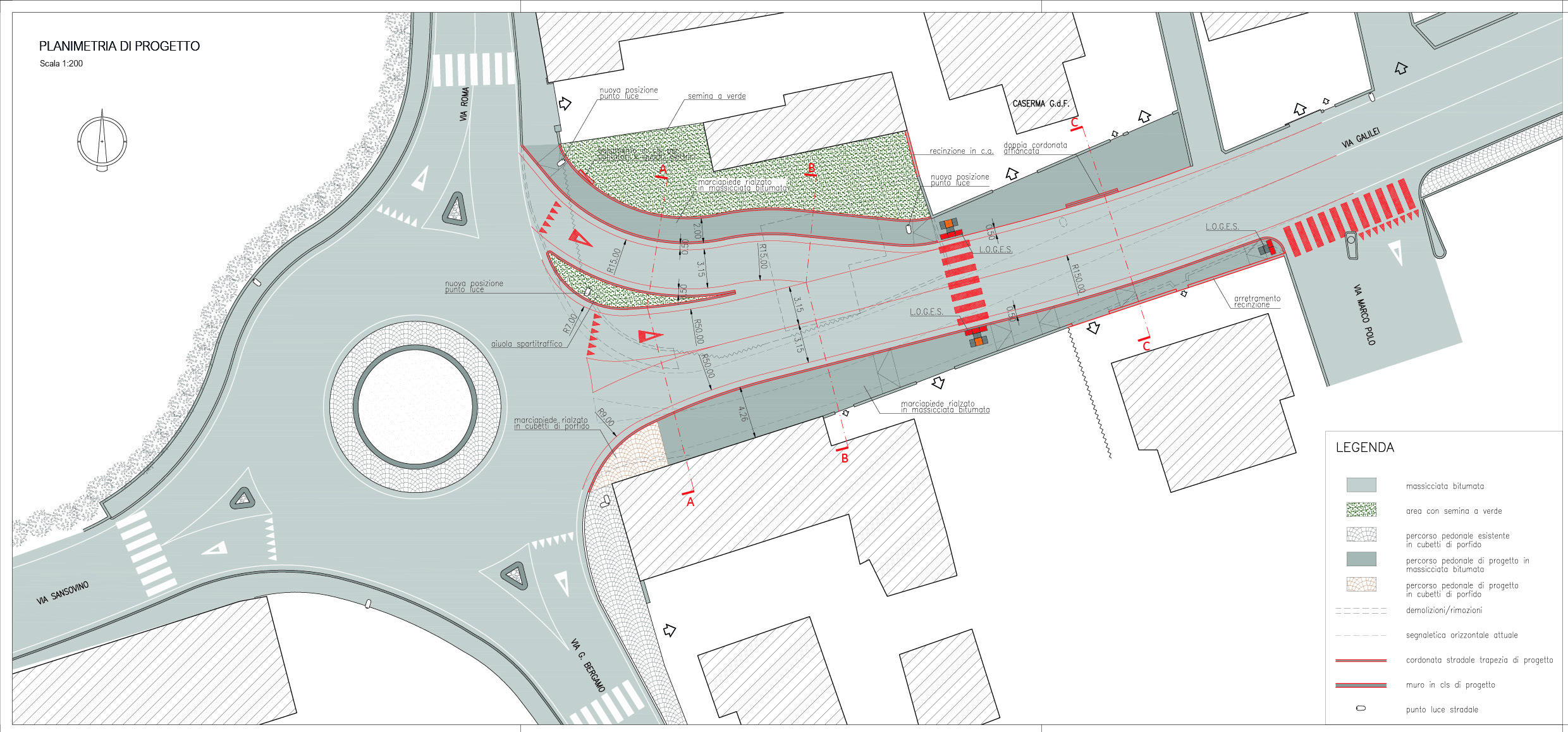 Rotatoria tra via Roma e via Galilei: pronto il progetto. Sarà realizzata anche una bretella di innesto verso nord e due piste ciclopedonali a nord e a sud di via Galilei.