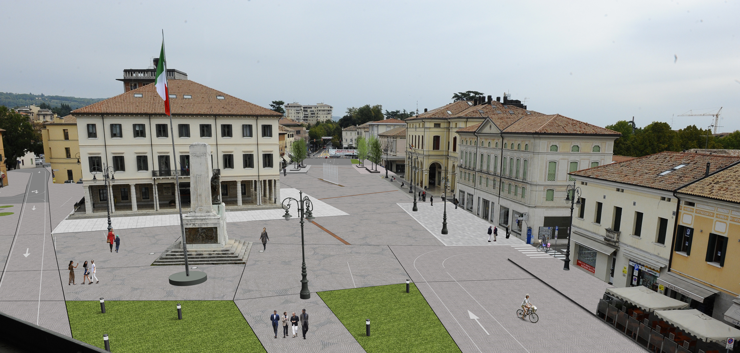 Prosegue il sindaco: "Il centro della città è un arcipelago di situazioni e occasioni. La pedonalizzazione si è offerta come motivo per elaborare un master plan (disegno generale) del centro che tiene conto della diversa importanza assunta nel tempo dai suoi spazi interni e della esigenza di meglio definire il sistema di collegamenti con le aree che lo integrano: a est, il parco Manin, a ovest piazza Oberchoken e Corte Maggiore, a nord est, piazza Cornaro. Proprio la rivisitazione della gerarchia simbolica e funzionale degli spazi ha guidato le scelte in ordine al disegno della pavimentazione e degli arredi, tenendo conto dei collegamenti pedonali e del bisogno di parcheggi.