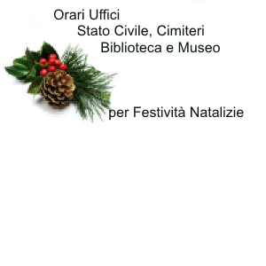 Sabato 26 dicembre 2015: dalle ore 9.00 alle 12.00 i servizi Stato Civile e Cimiteri sono operativi per eventuali permessi di seppellimento.